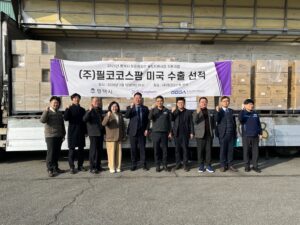 평택시와 화장품·의료기기 전문 생산기업 ㈜필코코스팜이 지역 산업 경쟁력 강화의 성과를 알리는 선적식을 개최했다.